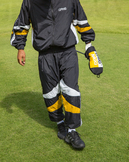 Color switching and embroidery design reminiscent of the sports scene in the 80's.